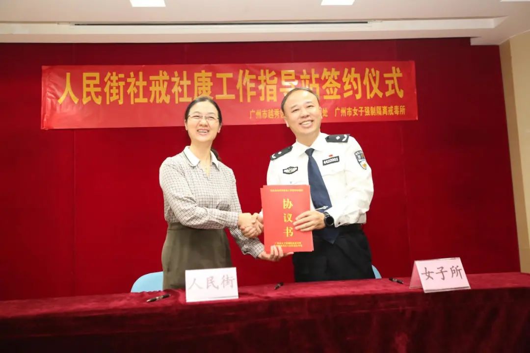 为营造共建共治共享的社会治理新格局,深化和提高社区戒毒社区康复工作成果和戒毒人员延伸帮戒成效,越秀区人民街道办事处联合广州市女子强制隔离戒毒所共建社区戒毒社区康复工作指导站,并11月4日上午举行共建协议签订暨揭牌仪式。
