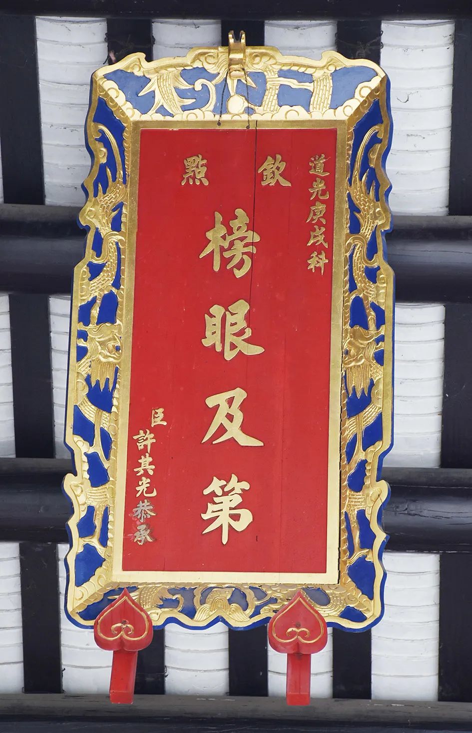 ▲走进中进大堂前,悬挂在中间的“榜眼及第”“进士”为份量较重的两块牌匾。