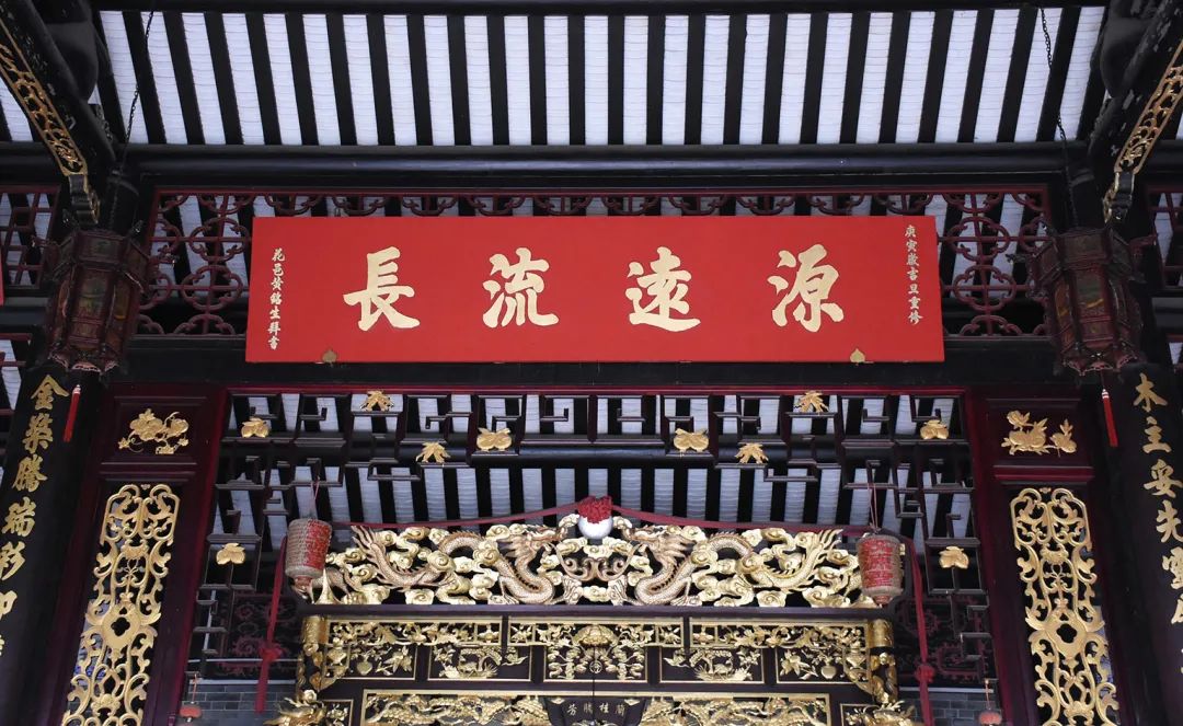 来到后进,明间上悬木匾“源远流长”,中心有神龛一个,安放许氏始祖及历代祖先画像及牌位。