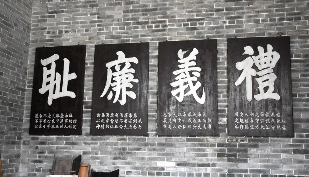 后墙两边挂木雕“孝弟忠信、礼义廉耻”。在中国传统社会,这八个字,素有“八德”之称,凝练着中华传统道德操守的精髓,是传统社会所提倡的人的立身之本。许钜泉介绍,许氏大宗祠注重传统文化的保留,“这八个字出自儒家思想,也是我们祠堂要传递的主要文化,是对后人的一种勉励、警示、。”