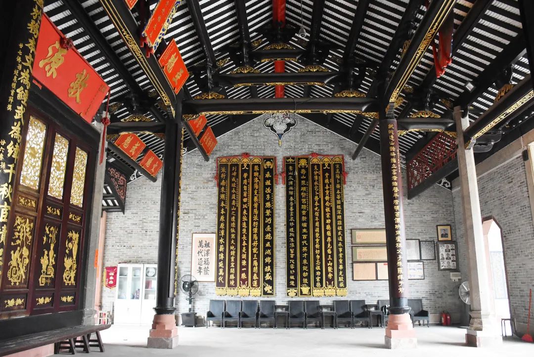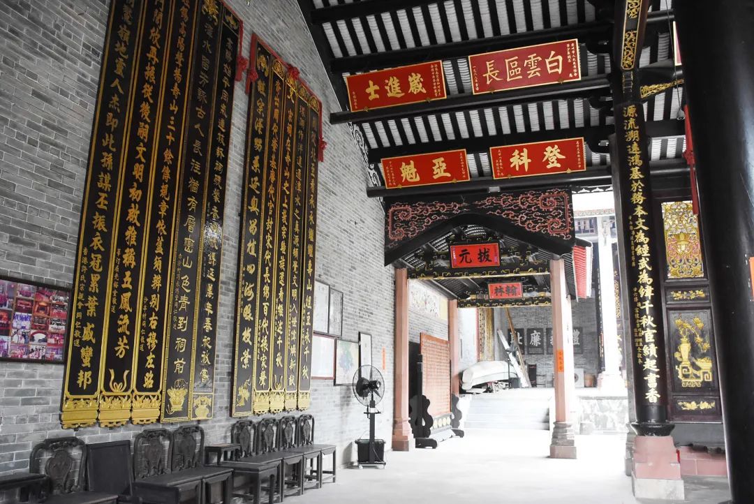 祠堂内山墙两边悬挂重修后宗亲送来的祝贺木雕对联,祠内有抱柱对联四副,其中有明末清初岭南三大家:屈大均、陈恭尹、梁佩兰撰写的对联,这也是许氏一族在当时的地位和财力物力的象征。
