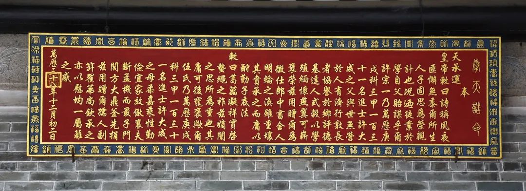 “许彦先和他的父亲、伯父两父子以及一个堂兄弟共5个人,在41年里,都考中进士,所以就有了‘五凤世家’的说法。”许钜泉指着前进门后的牌匾说道。