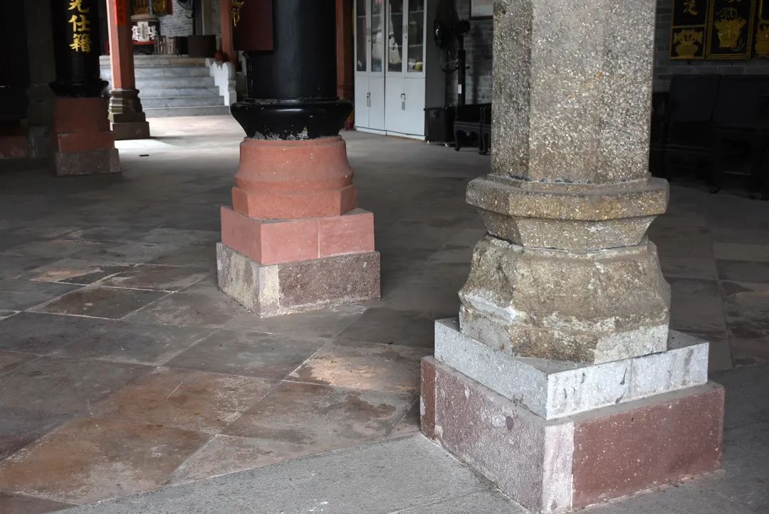 ▲中堂的顶梁柱基底由不同年代的石头所砌。