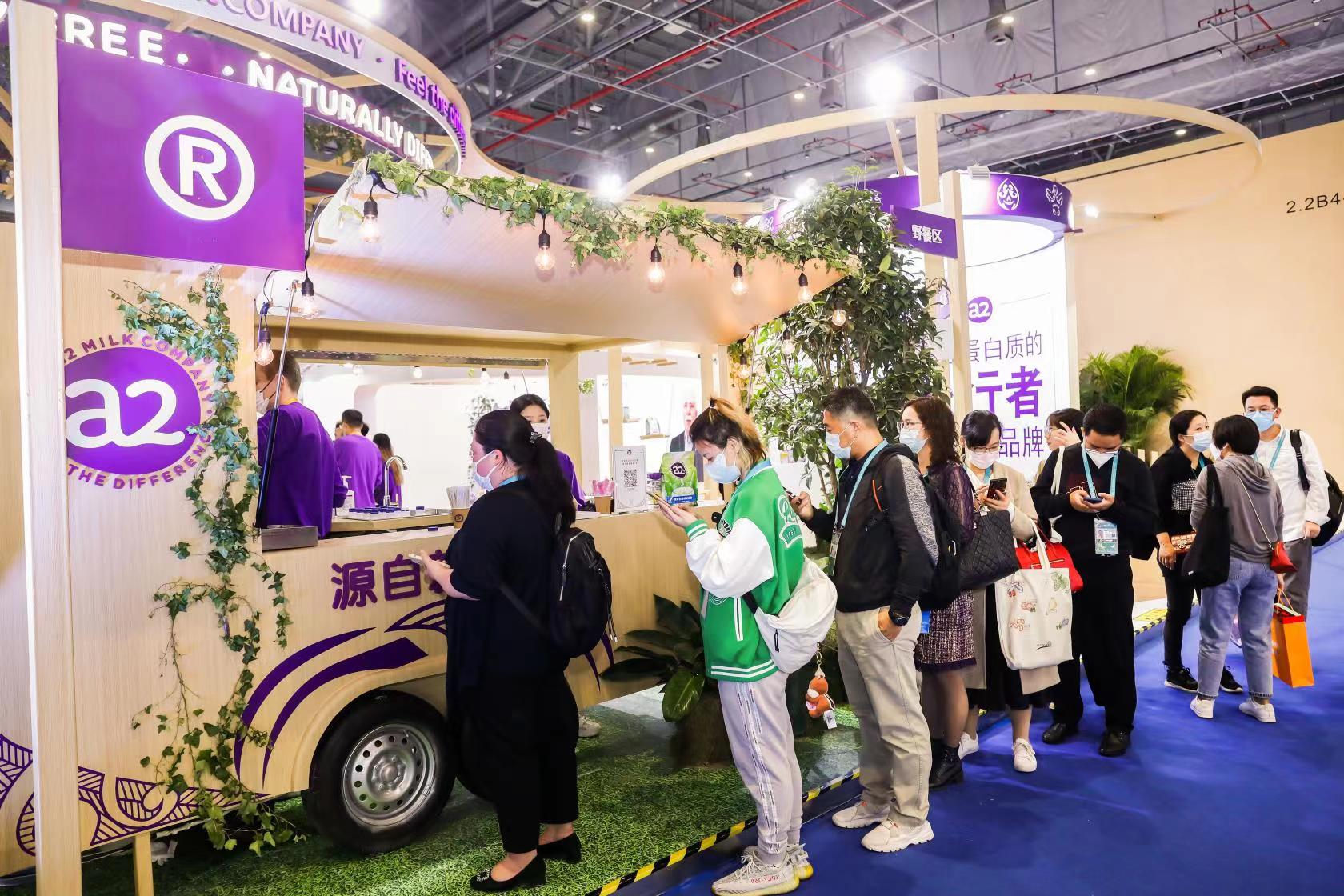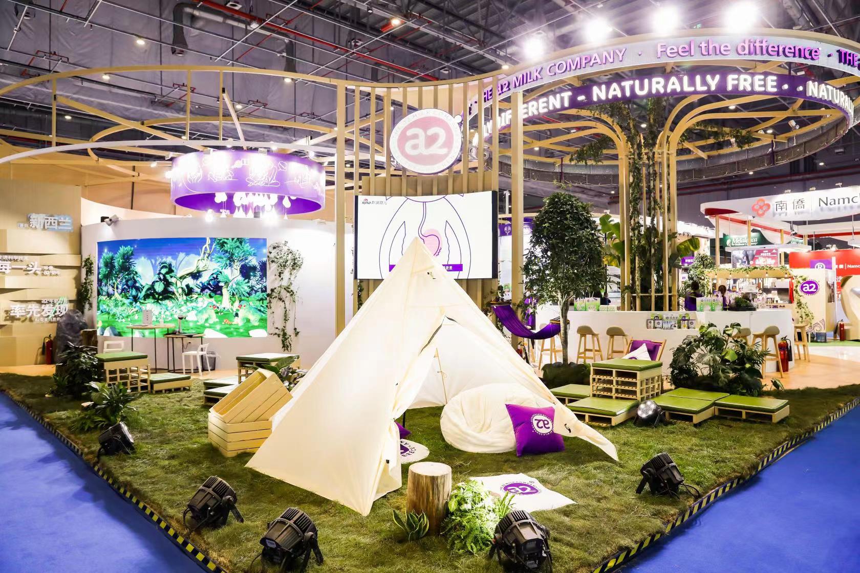 许久未出国门,因此,当路过新西兰乳品企业a2™牛奶公司和战略合作伙伴中国农垦控股上海有限公司的展台时,记者一下就被其吸引住了:紫色基调之下,原木与新西兰独有的植物和生物之间,安放着家庭出游的房车,悬挂的秋千上摆满了新鲜的奶制品,使参观者仿若置身新西兰的自然世界中,忍不住在此停留。