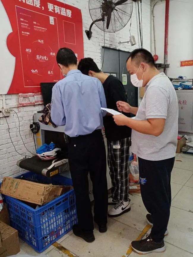 本次行动,检查组重点检查了寄递物流从业人员是否严格按照“五个100%”进行规范操作,并提示他们必须严格落实“寄件人实名制查验”“寄递物品先验视后封箱”等工作要求,同时核查了各寄递点持证经营、技防安检、从业人员登记等情况。