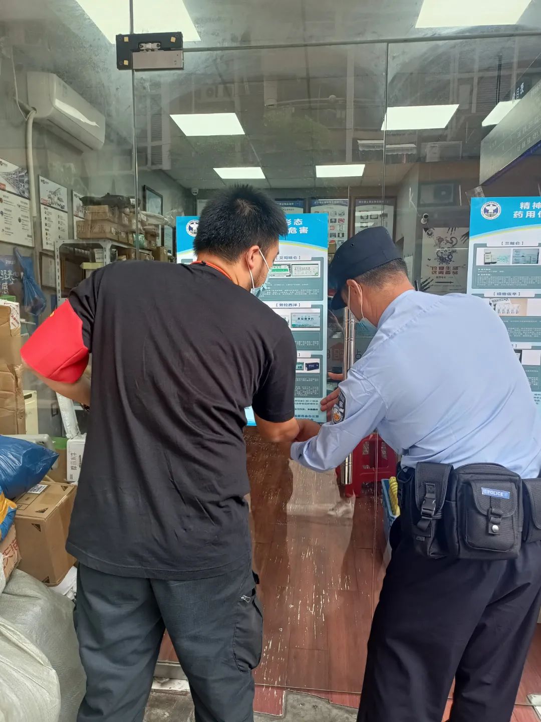 专区民警和治保社工还在寄递点现场张贴了禁毒宣传海报,向从业人员普及禁毒知识,宣传省、市和区关于举报毒品犯罪奖励办法和规定,从而提高寄递行业从业人员的辨识毒品能力和举报毒品犯罪的积极性。