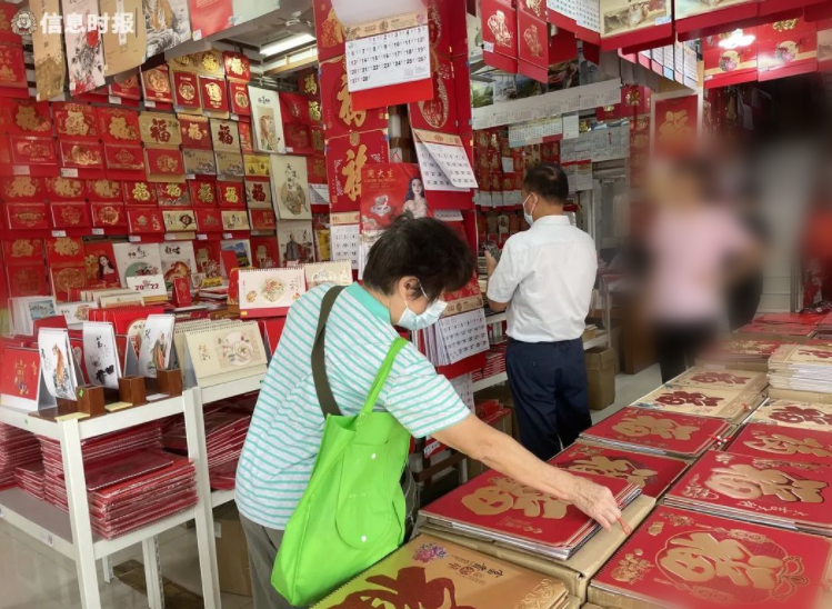“月历一条街”上,某日历店的老板陈先生介绍,海外不少老顾客依然很注重中华传统文化,“月历于他们而言,不仅仅是看日期翻皇历。换挂历就如同贴春联,是每年辞旧迎新必不可少的仪式。”陈先生说。