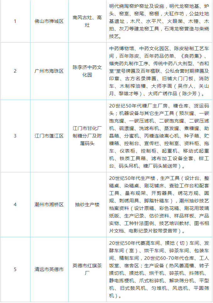 首批广东省工业遗产名单