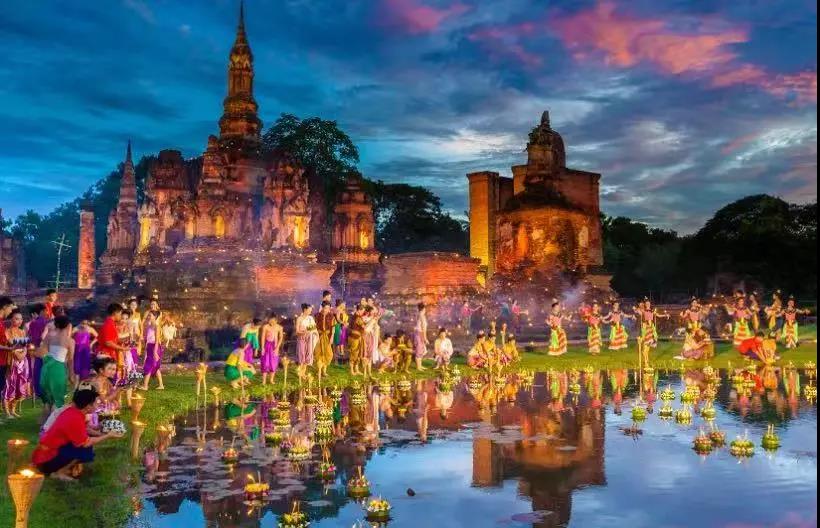 水灯节Loi Krathong Festival是泰国民间最富有意义、最美丽浪漫的节日,按照泰国的传统习俗,在水灯节当天,民众自发聚集在湖泊、河流和运河周围,向水神表示敬意,使用芭蕉树干和芭蕉叶为主要材料,亲手制作装饰有蜡烛、香、鲜花装饰的美丽莲花形状的水灯放进水中,同时祷告祈愿,以寄托心中美好的愿望和祝福。水灯节的夜晚是泰国最美的节日之一,被誉为一生一定要感受一次的节庆活动。