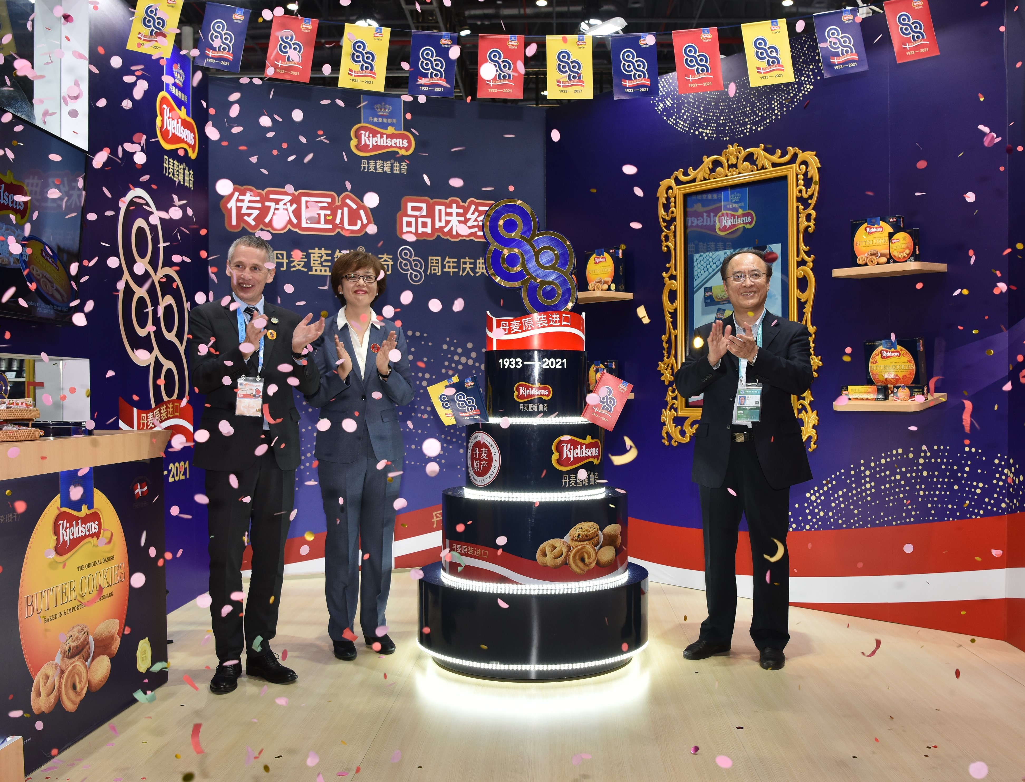 在本届进博会现场,记者探馆见到了许多国际食品品牌带来融合本地化的产品。全球精品曲奇品牌丹麦蓝罐曲奇的展位吸引观众驻足“打卡”:米其林大厨用“香草圈”“满月圆”等5款经典的丹麦蓝罐曲奇搭配绿豆糕、麻薯、肉松等中式特色食材,为消费者带来“丹麦经典+中国创意”的多重味蕾体验,“花朝月夕”“姹紫嫣红”“金玉满堂”等甜品颇具国风意蕴,同时融入了丹麦的精细工艺与巧思。这是丹麦蓝罐曲奇第四年参加进博会,并于此举办品牌 88周年庆典,带来中西结合的新品。“中国是丹麦蓝罐曲奇在全球业务的重要市场之一。”丹麦蓝罐大中华区总经理张灯说。