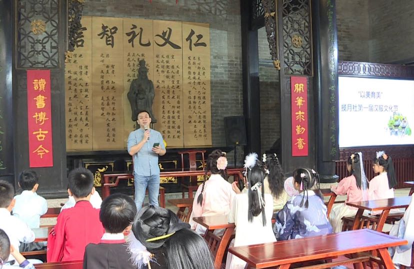 11月6日,由广州市天河区协创志愿服务中心、番禺区红郡小学揽月社联合主办的传统文化之汉服体验爱国主题研学活动在余荫山房举行。活动旨在组织来穗学生传承弘扬多彩的汉服文化。