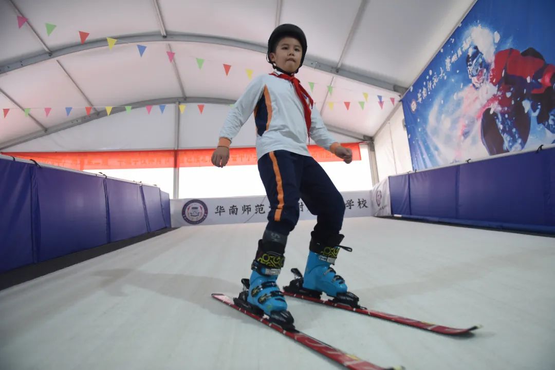 如今,滑雪已经成为花都华附的校本特色课程。校长张朝胜表示,把冰雪运动扩大推广至全校,让2000多名学生都会滑雪,通过等级考试。目前,已将冰雪运动的基本运作、基础内容,整合、融入到平常体育课教学中,纳入体育课的必学内容。同时,课后托管也开设滑雪课程。