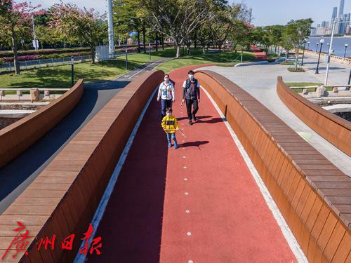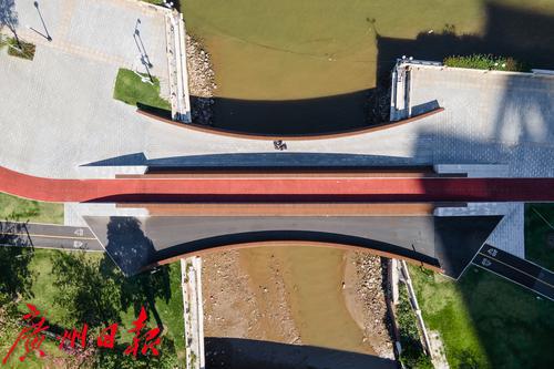 水清岸绿、船只游弋,在五道并行的广州市阅江路碧道上,有一条跨涌小桥静立在蓝天碧水间。每天在此散步、跑步、骑行的市民可能不知道的是,这条看似低调的小桥是世界建筑大师贝聿铭之子、美国贝氏建筑事务所董事长贝建中的作品。