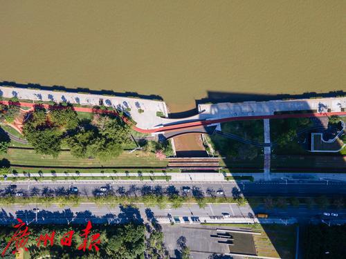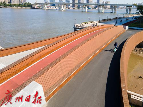 2020年6月,阅江路碧道示范段一期正式开放,以其高品质的滨水空间和齐全的配套设施成为市民、孩子休闲和游玩的好去处。阅江路碧道以“阅江汇客·都市生活”为理念,致力建设凸显广州特色、服务于周边地块发展需要、展现社会主义现代化国际大都市形象的滨水空间。阅江路碧道还首创“五道并行”理念——“水上游道+健康漫道+观光跑道+骑行车道+有轨电车道”,强调“五道”无障碍贯通,提升人民生活幸福感。然而琶洲大桥以西的碧道沿江段,东西走向遇到一处河涌口,不仅打断了碧道的连续性,还影响行人的顺畅通行。