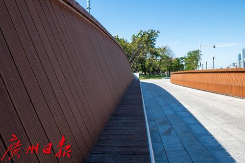 贝建中将这座桥视作一座雕塑,通过精密的几何构型将小桥变成了珍贵的“珠宝”与沿江最重要的景观之一,重新激发江畔的空间活力。秋日羊城清朗的天空下,碧道两旁草木掩映、鲜花盛开,景观设施错落有致,有轨电车伴身而过,将花城的生机与活力,展现得淋漓尽致。