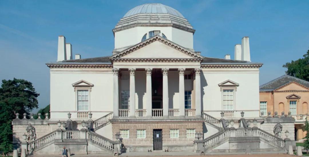 ▲帕拉第奥风格的克罗伊姆庄园,其南立面有一个突出的爱奥尼亚式四柱式门廊