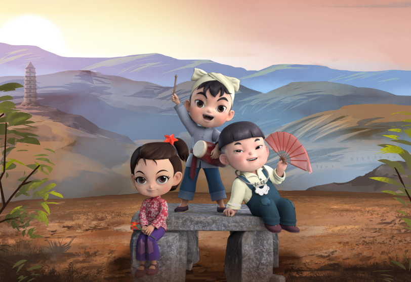 《延安童谣》围绕蛮牛、胖豆、冬儿三个可爱的“延安娃”展开,以他们天真烂漫和朝气活力的生活学习场景为背景,讲述了一段段发生在革命时期延安地区充满童趣且极具教育意义的故事。除了有爱、温馨的剧情,最令小朋友们期待的便是动画片中一首首革命童谣。《扭起秧歌迎亲人》《延安城里新气象》《我随红军春耕忙》《又唱歌来又识字》……这些遴选自陕北民间的童谣精品,结合当下小朋友的兴趣爱好,经过音乐家的再创作,焕发新的生机。