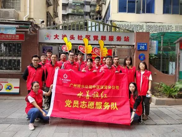 活动当天,广州排水公司中区运营分公司党支部副书记黄双喜带领支部党员、团员一行19人深入社区,来到大沙头路、沿江东路与大沙头社区党委工作人员共同参与志愿服务活动。