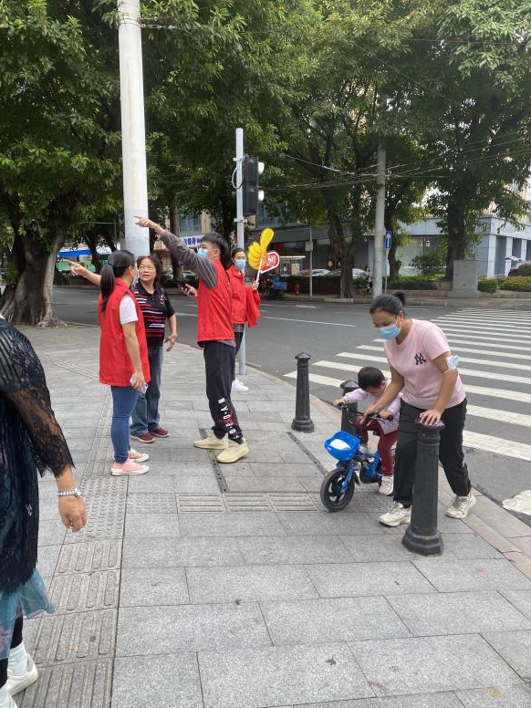 志愿者们身穿红色马甲,分组行动,一部分人员手拿“大拇指”交通标牌,在各个交通岗路口维持交通秩序,为过往行人提供问路咨询服务,对不遵守交通规则的行人进行提醒教育,倡导广大群众增强交通安全意识。