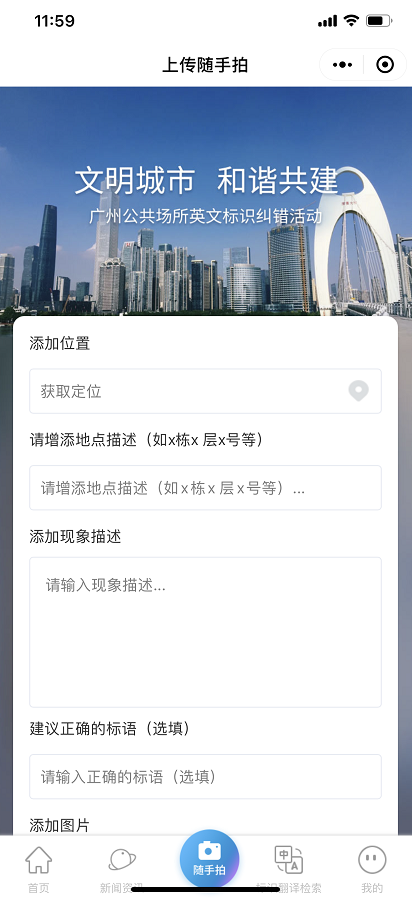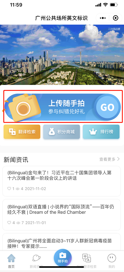 发现错误标识,拿起手机拍下图片/视频,上传到“广州公共场所英文标识”小程序,就能获得双倍积分!