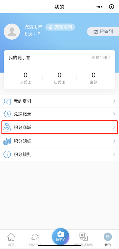 通过上传纠错随手拍、签到、完善个人信息等方式获得积分后,可以在“广州公共场所英文标识”小程序-“我的”页面-“积分商城”内用积分兑换相应礼品,按提示操作就能换礼啦!