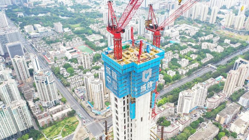 最灵巧的“移动造楼工厂”。中建三局自主研发的第四代“空中造楼机”——轻量化支点顶模集成平台打造功能齐全、绿色安全的“移动建造工厂”。平台重818吨,高21米,作业层共8层,可实现钢结构吊装焊接、钢筋绑扎、剪力墙养护与修补等同时作业。相比传统爬模系统,该平台的使用可以将施工效率提升约20%,而相比前三代顶模系统,该平台具有重量轻、易安装、易周转等显著特点。
