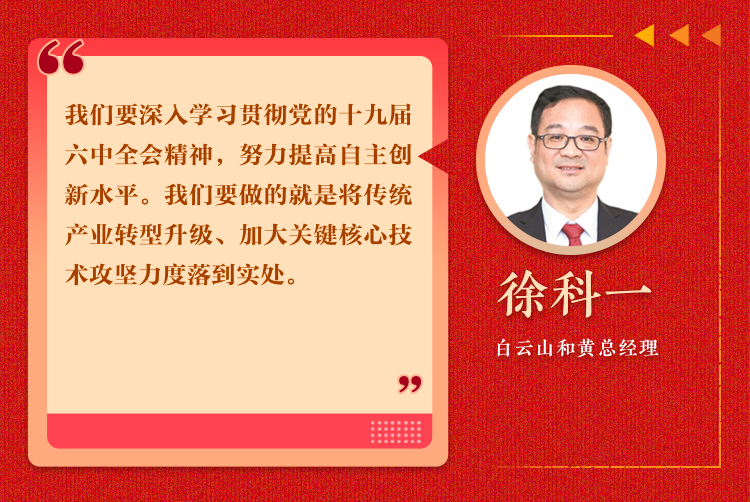 我们要深入学习贯彻党的十九届六中全会精神,对药企而言,努力提高自主创新水平非常重要。作为老牌中药企业转型成现代中药企业创新发展的代表,我们坚持科技和科研模式创新以实现产品迭代升级。白云山和黄两个主导产品复方丹参片和板蓝根颗粒先后突破了10多项国内先进技术,在同类市场占据龙头地位。