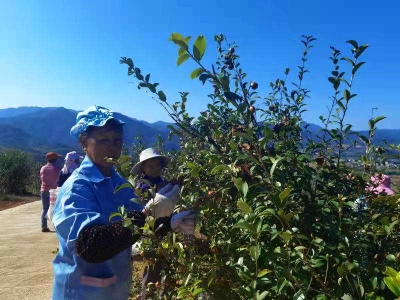由于油茶产业属劳动力密集型产业,每年还能够为当地农民提供摘果、除草等临时就业务工,油茶种植不仅带来绿色增量,同时也为当地群众就业增收拓宽了渠道。采收工人周富菊就是基地附近村的村民,他告诉记者,如今正是农闲时期,趁着家里没农活要忙且基地近的便利,他和不少村民都在基地里做“短工”,每天能增收一百多元。