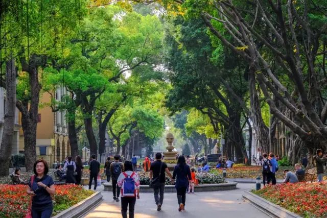 作为声名在外的热门打卡点,沙面被珠水环绕,岛上绿树成荫,存留大量欧陆风情老建筑,形成了独特的露天建筑“博物馆”。漫步在此,惬意无比。