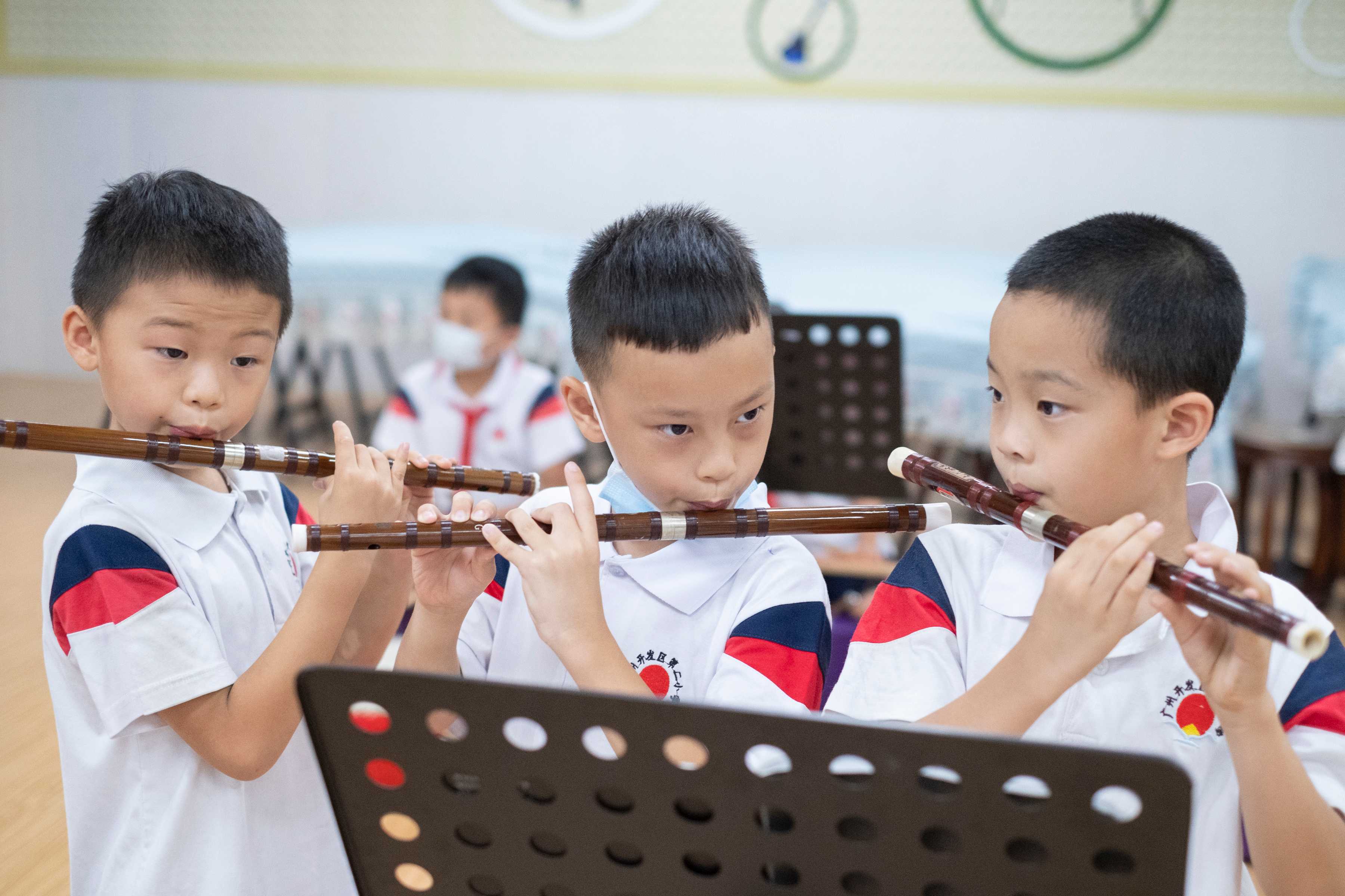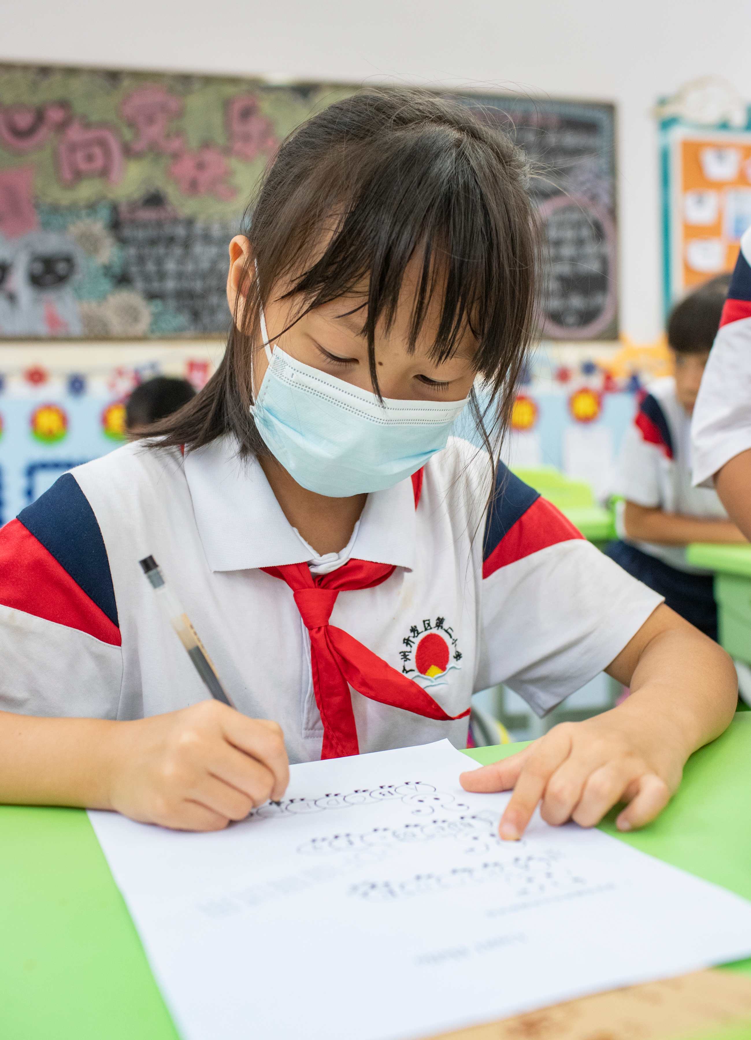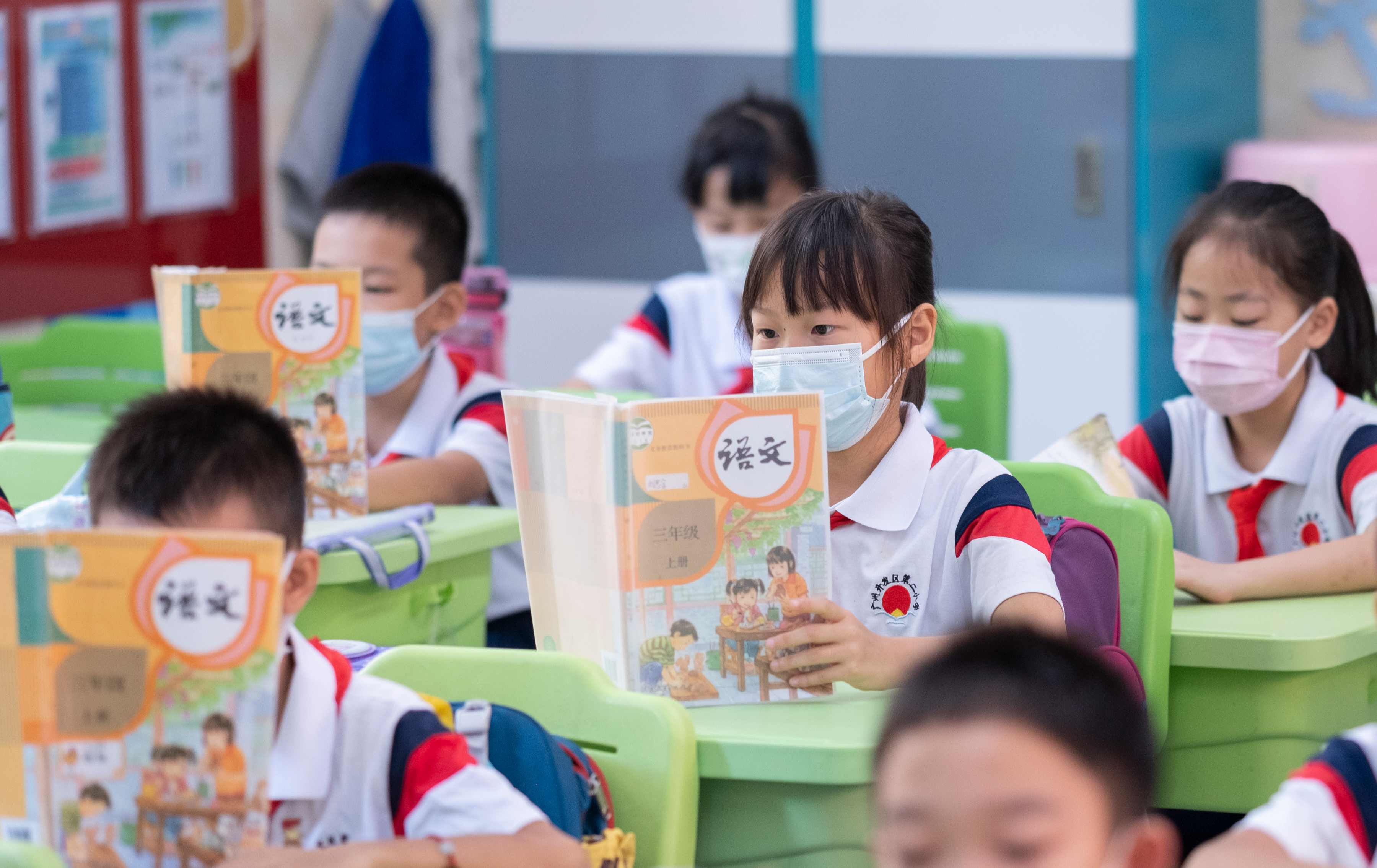 三至六年级开始基础托管 思含留在课室里写作业 还有学科老师在班里答疑 根据政策 学校要求老师为一、二年级学生仅在校内安排适当巩固练习 根据每天的教学内容设计以听、说、读、操作 和体育锻炼为主的家庭作业 引导孩子每天坚持不少于20分钟的阅读 和不少于10分钟的体育锻炼 三至六年级则以中等水平的学生为标准 控制每天作业总量