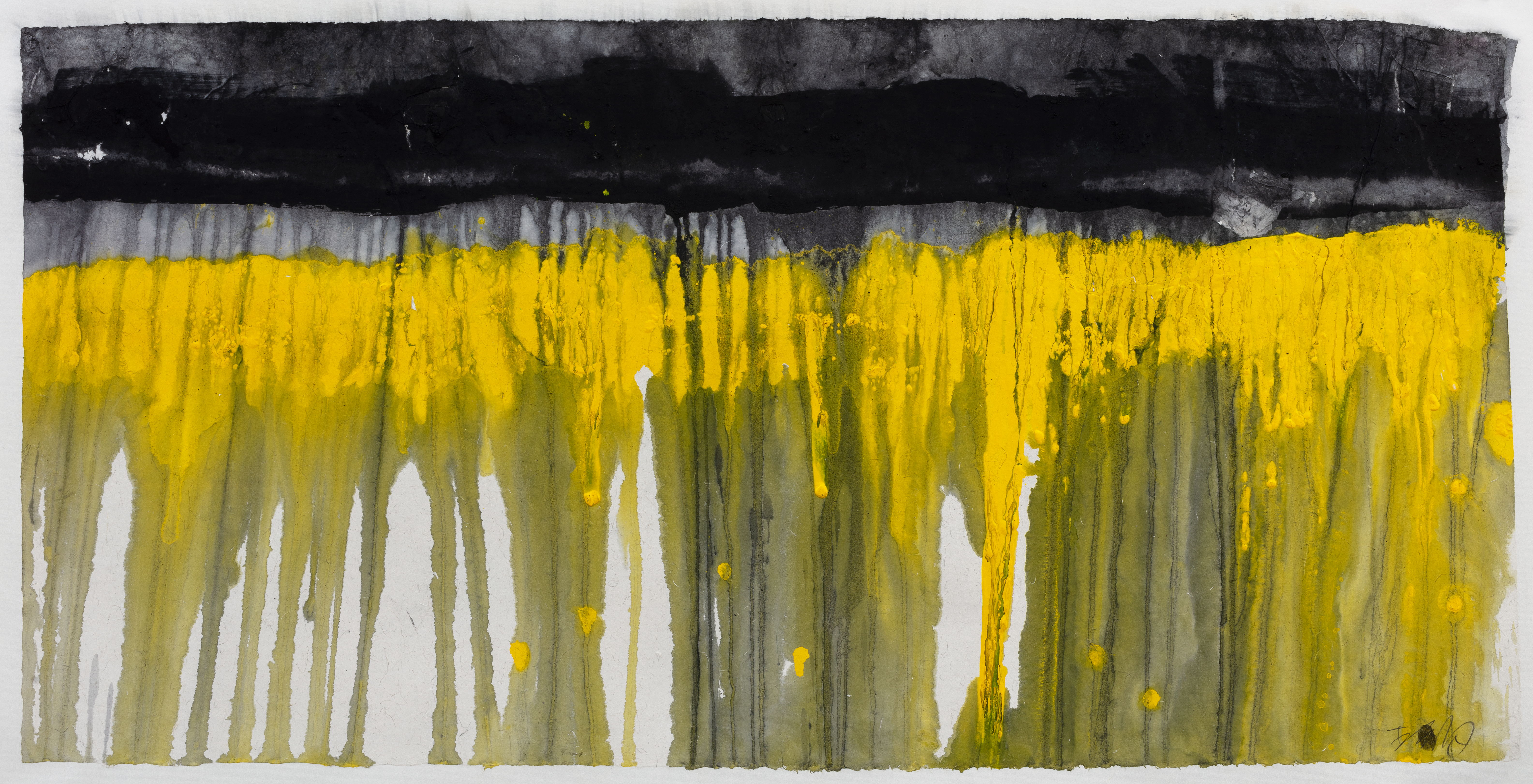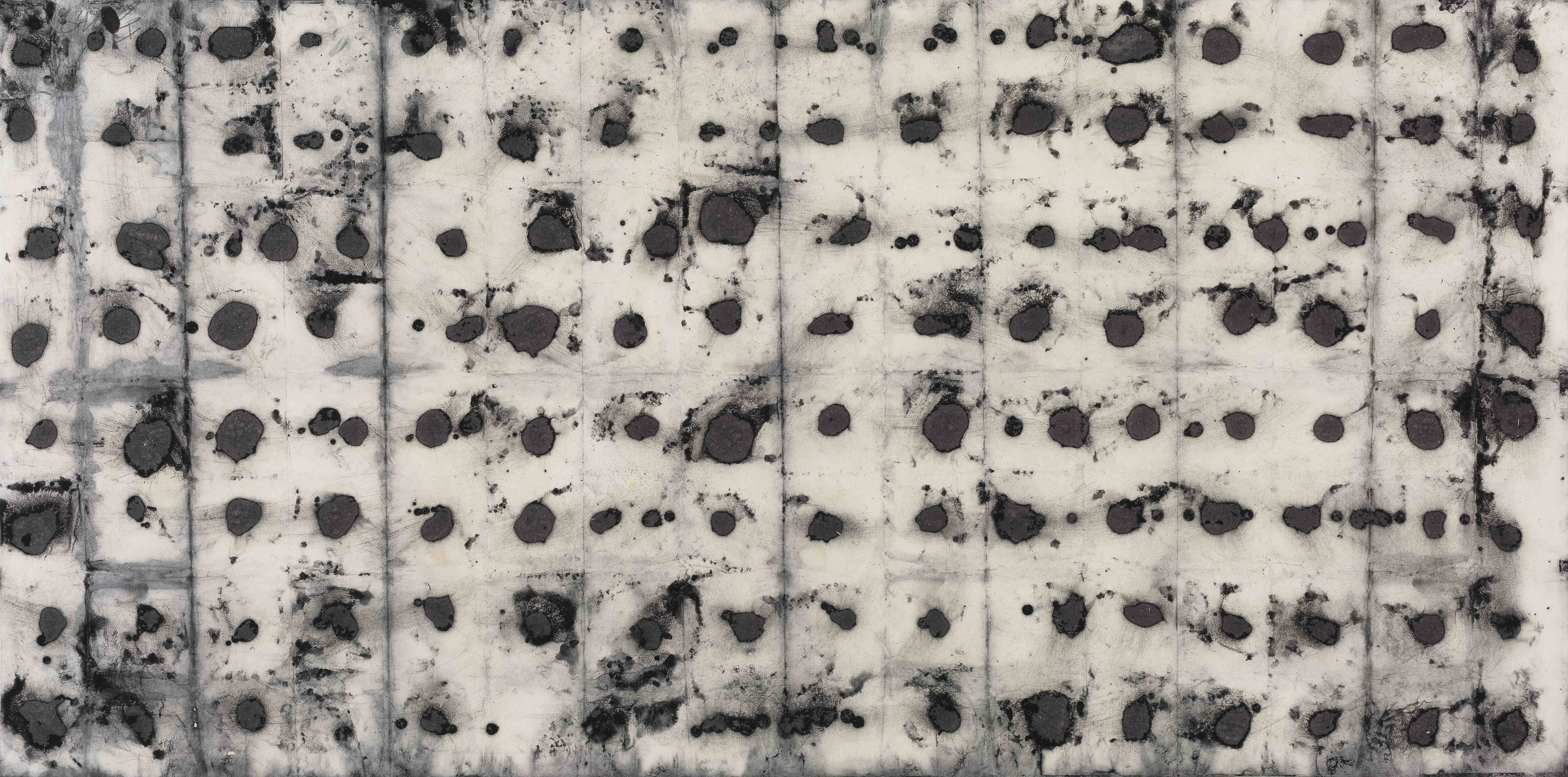 实际上,从放弃传统水墨的范式,进入当代水墨开始,李纲就不断寻求创作媒材的转变。在他的水墨作品实验中,也逐渐形成了个人的构成风格,将点、线间的对比和叠加赋予人格和情感化,在占据和留白的抽象平衡间,潜藏了东方智慧中圆融的世界观。此次展出的《水墨元素》系列中,墨还是墨,但已经没有形状,符号性的墨式、流动的痕迹在纸张上随意碰撞,“这种自由的新方式既启发自草书,也从波洛克那里得到直接的启示,波洛克并没有书法经验,而我是带着书法的笔触,自然地书写和泼洒。我既希望建立一种秩序感,又希望保留有‘野’和自由。”李纲说道。