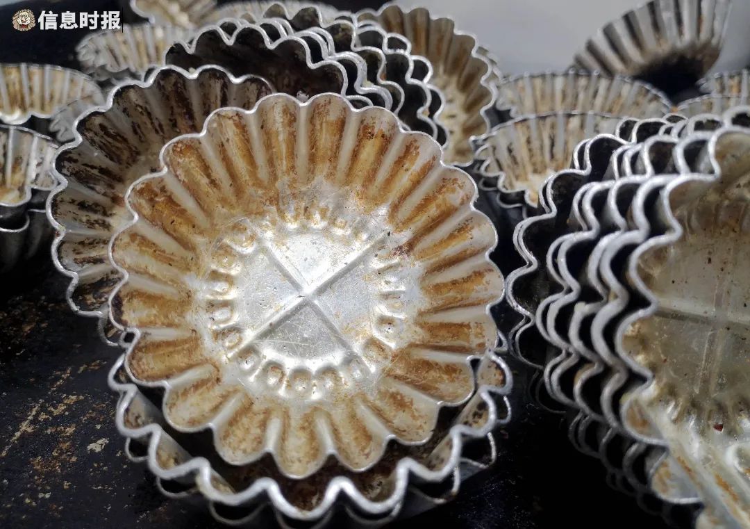 除了制作技艺有考究,烤蛋挞所用的蛋挞盏也是嘉乐蛋挞王的独门秘技之一。刘小姐向记者展示了她们的独家设计——底部刻有“十”字的蛋挞盏。嘉乐的蛋挞口感更饱满,蛋水充足,陈先生介绍,蛋挞盏里微微凸起的“十字”,正是为了让蛋水受热更加均匀。“若用普通蛋挞盏烤我们的蛋挞,很容易上面过熟,但底部却因炉温透不上去导致底部过湿,蛋水熟不透。这种模具刚好能兼顾上下内外,烤出来的蛋挞自然皮酥蛋滑。”