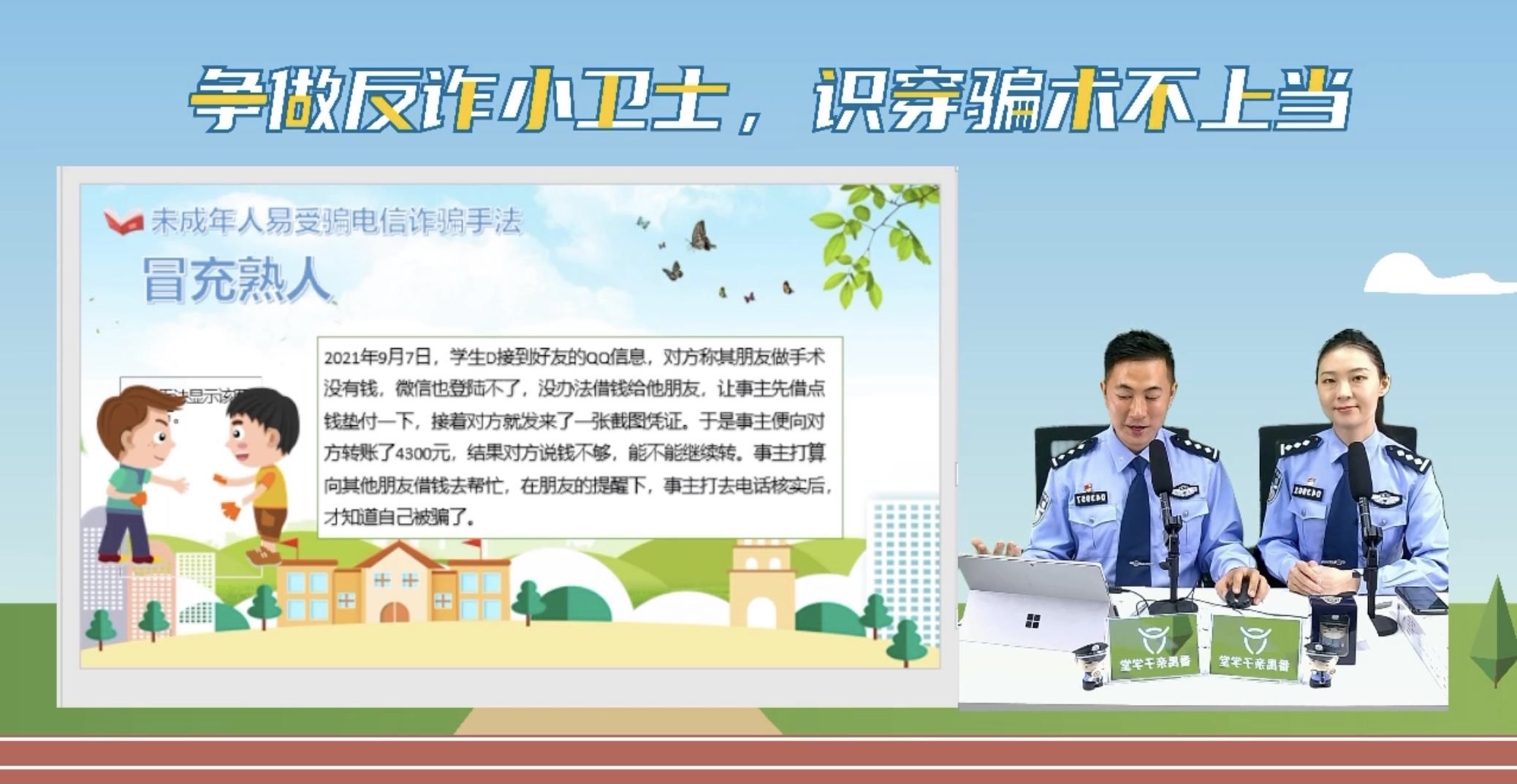 近日,广州市公安局番禺区分局反诈中心联合番禺区融媒体中心、番禺区教育局、番禺亲子学堂,以直播网络课堂的形式为番禺区的中小学生、家长们上了一堂主题鲜明、严肃又不失生动的“争做反诈小卫士 识穿骗术不上当”线上公益直播课。