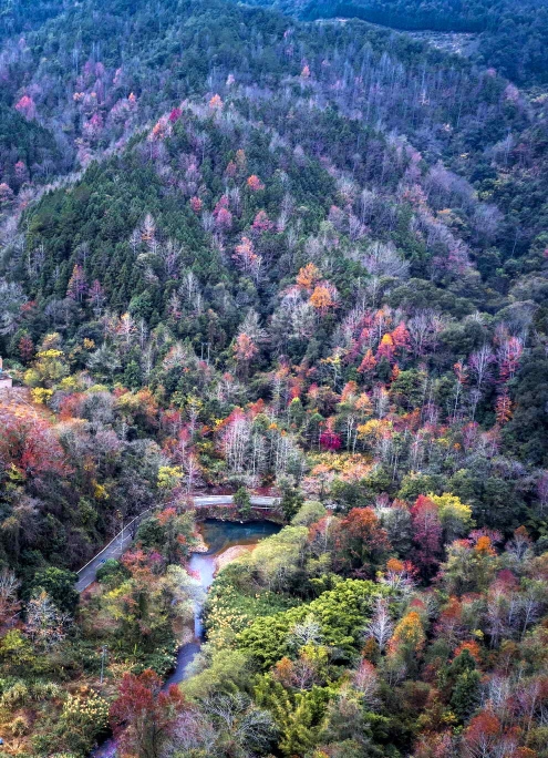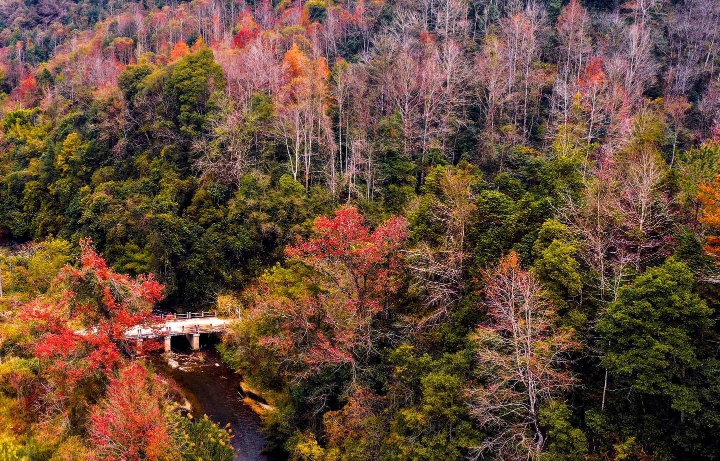 四季轮回,初冬的车八岭,斑斓如斯,片片彩叶仿佛五彩的霓裳,间彰显得绚丽缤纷,好似一场多彩的冬日交响曲正在上演,每个角落里的每处风景都有独特的魅力,让人神往陶醉。
