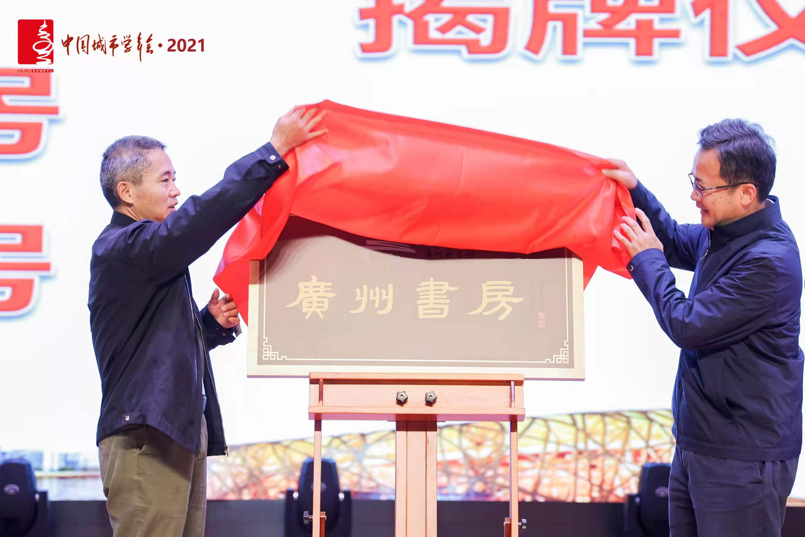 10月30日上午,在杭州举行的(中国)城市学年会·2021开幕式暨城市学高层论坛上,杭州城市学研究会副理事长许勤华与广州大典研究中心常务副主任兼广州图书馆副馆长刘平清一起,共同为“广州书房”揭牌。这是广州市外第一个面向公众开放的以广州地方文献为特色的主题性阅读空间。