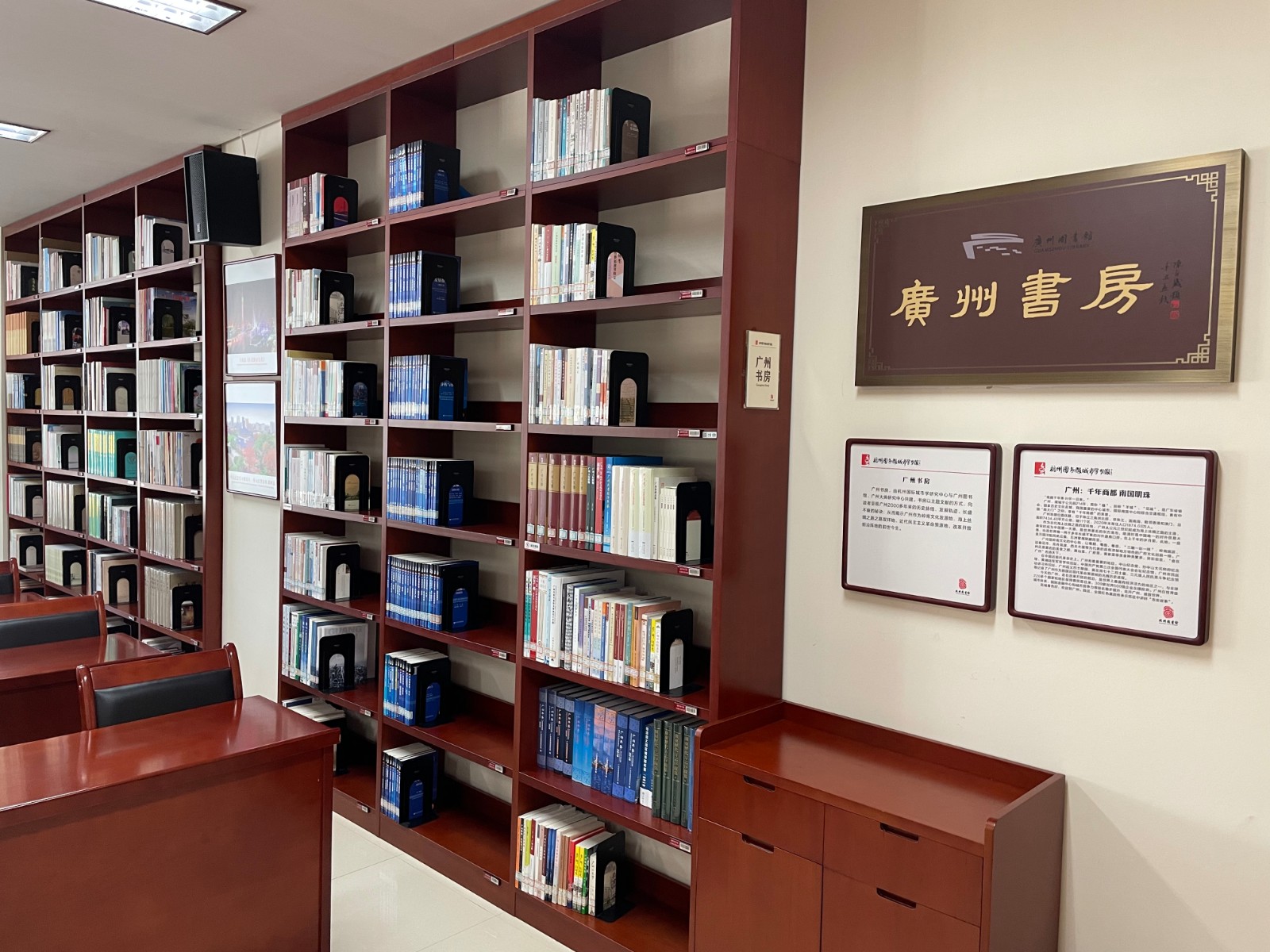 “广州书房”由杭州国际城市学研究中心与广州图书馆、广州大典研究中心共同打造,设于杭州城研中心办公大楼二楼。这里同时也是世界城市博物馆、杭州图书馆城市学分馆所在地。2018年5月以来,城研中心为加强与全国重点省市的交流合作,共建共享“世界城市博物馆”,联合国内各城市,在博物馆内特别设立“城市书房”,以此打造系统综合、独具特色的“城市学图书馆”和“城市学知识中心”。“广州书房”是继“重庆书房”“西安书房”“太原书房”“开封书房”“南昌书房”等之后,又一个对公众开放的城市主题书房。