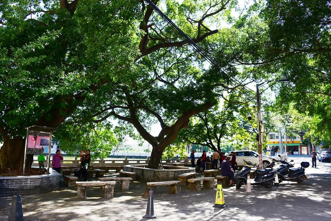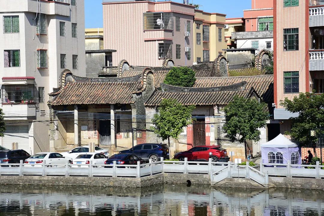 从西山村牌坊走进去,经过一条大马路,很快就可以看到一个大池塘。池边有多棵百年老榕树,平日里村民就在树下休憩,居民楼房沿池塘而建,其中还穿插着多座古建筑。