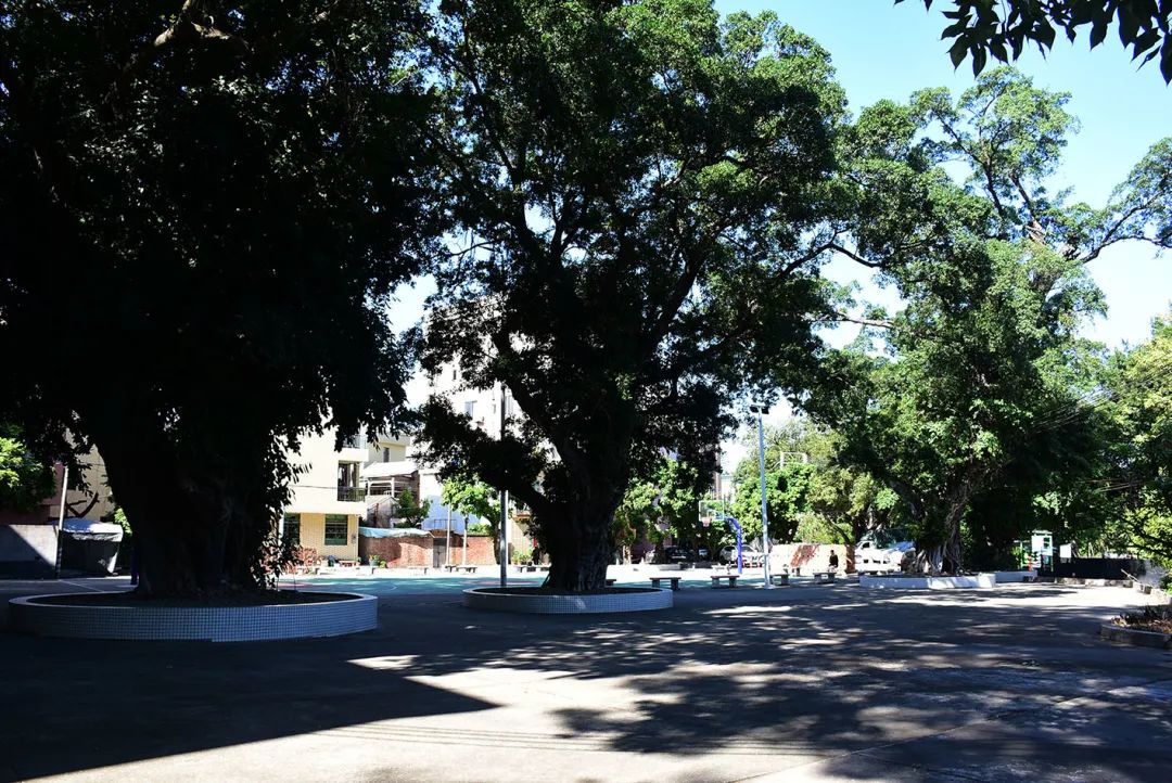 ▲宗祠里树木林立,祠堂后的荒地被改建为村民活动场所。