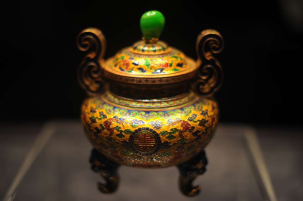 中国古代工艺品中最晚形成的著名品种是珐琅,其中比较常见且为人们熟知的品种,就是俗称的景泰蓝,它大约于13世纪末由阿拉伯国家传入中国。这种以金属为胎, 填敷珐琅釉料烧制而成的作品融汇了民族的传统风格,成为人们喜爱的艺术珍品。