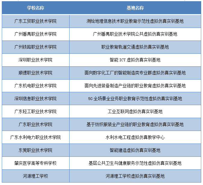 广东省入选职业教育示范性虚拟仿真实训基地培育项目的名单