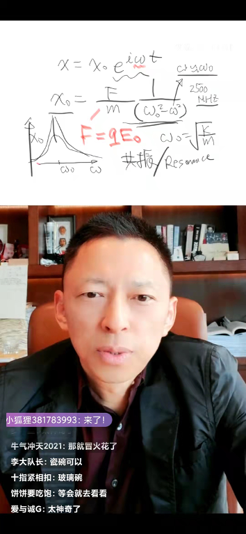 作为麻省理工学院的物理学博士,张朝阳在直播中重新操起“老本行”。从11月5日开始,《张朝阳的物理课》已直播四期。在本期的直播课程中,张朝阳依然从常见现象入手,抛出一个问题:微波炉如何加热食物?他不急于解释,而是讲起“简谐运动”。