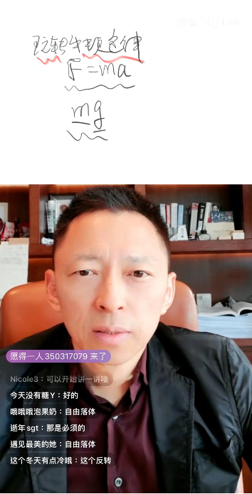 讲解过程中,他不断提醒大家,每堂课的后半段有很多运算,涉及大学、中学物理和数学,会比较难。“听不懂没关系。可以把我讲的分解成模块,一个不懂,听下一个,不要卡住。”如果理解困难,网友可在搜狐视频“关注流”观看回放,通过“直播白板”复习。也有“课代表”将每堂课的笔记,发布在搜狐新闻客户端“关注流”上,便于随时查漏补缺。