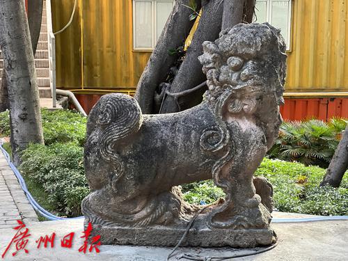 文物保护建筑屋后摆放着一只明末清初的石狮子。