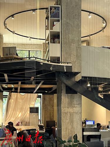园区里的旋转铁架楼梯是网红拍照打卡点。