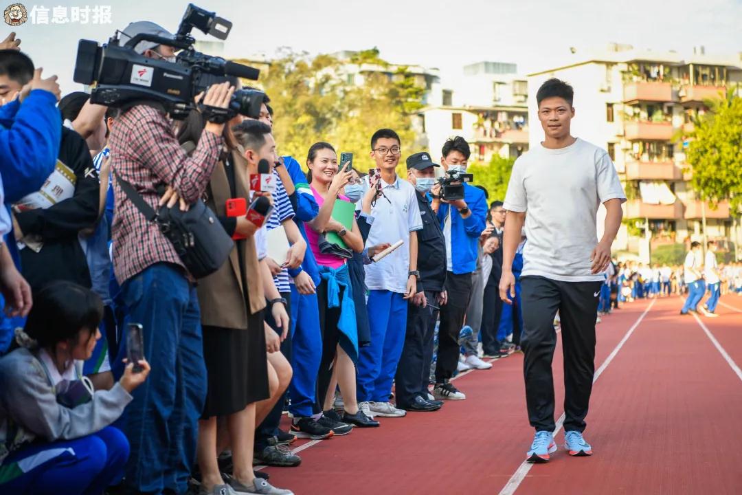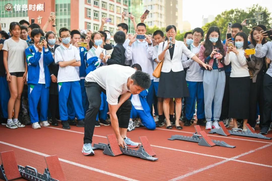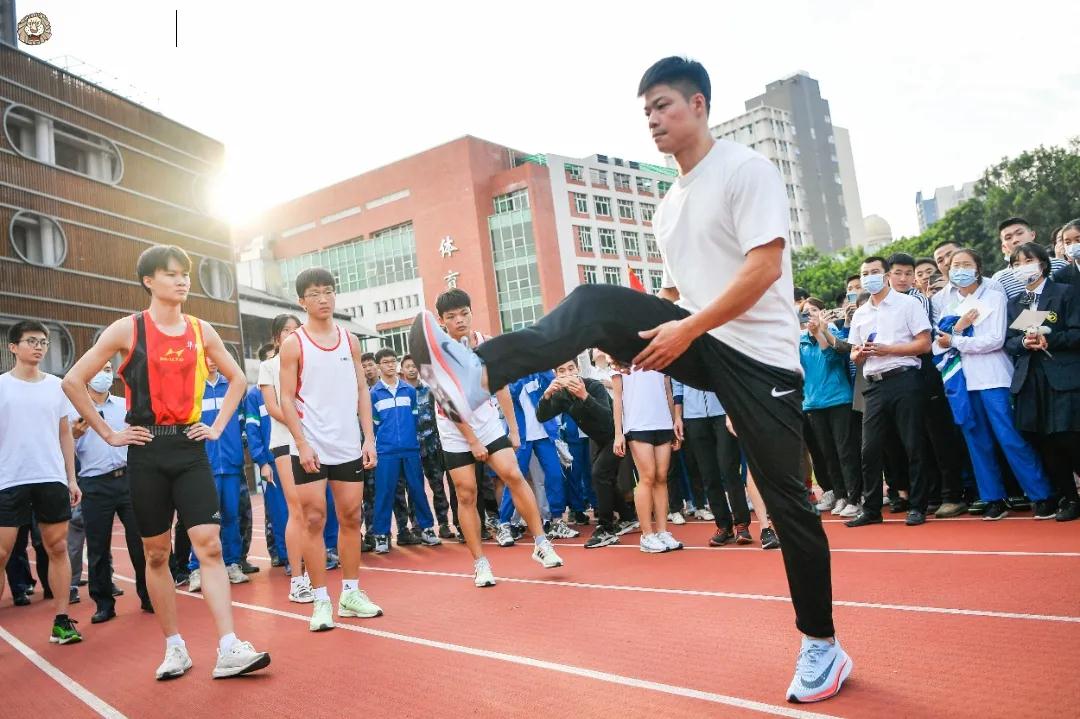 “我听说你们刚刚结束期中考试,可能这一次考试有人对自己的成绩很满意,有人会感到失望,希望我前面说的这些,能给你们带来一点启发。能在华附学习,证明你们都是同龄人当中成绩最拔尖的佼佼者。”苏炳添寄语学生,在学习之余,希望也能更关注中国体育的方方面面,“因为体育能给予你发自内心的力量。我和中国田径人,在不断突破极限,也很希望能看到你们突破自己的极限,成为更优秀的自己。”