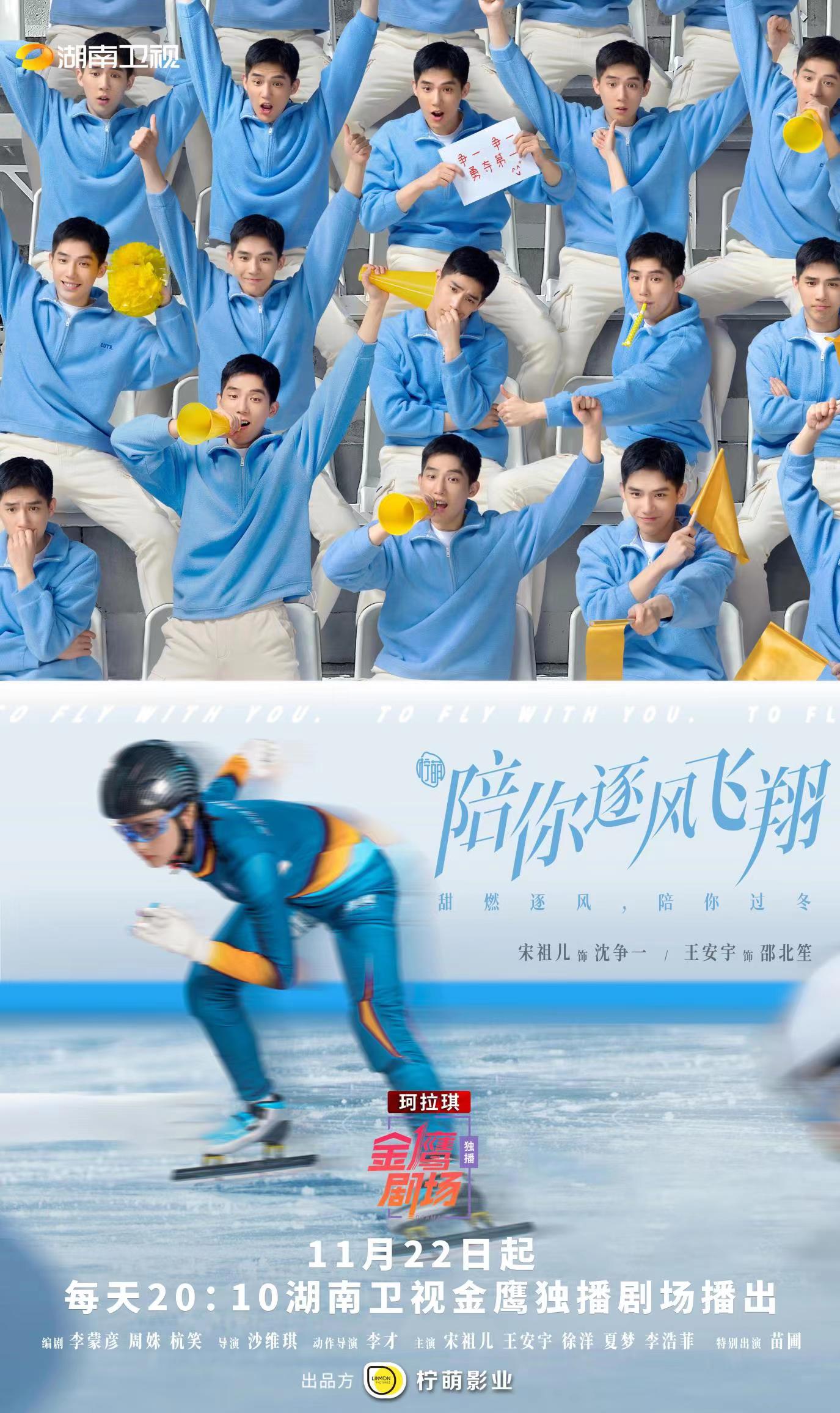 由柠萌影业出品,沙维琪执导,李蒙彦、周姝、杭笑担任编剧,宋祖儿、王安宇、徐洋、夏梦、李浩菲主演,苗圃特别出演的青春竞技甜燃剧《陪你逐风飞翔》今日定档,该剧将于11月22日在湖南卫视金鹰独播剧场播出,腾讯视频全网独播。
