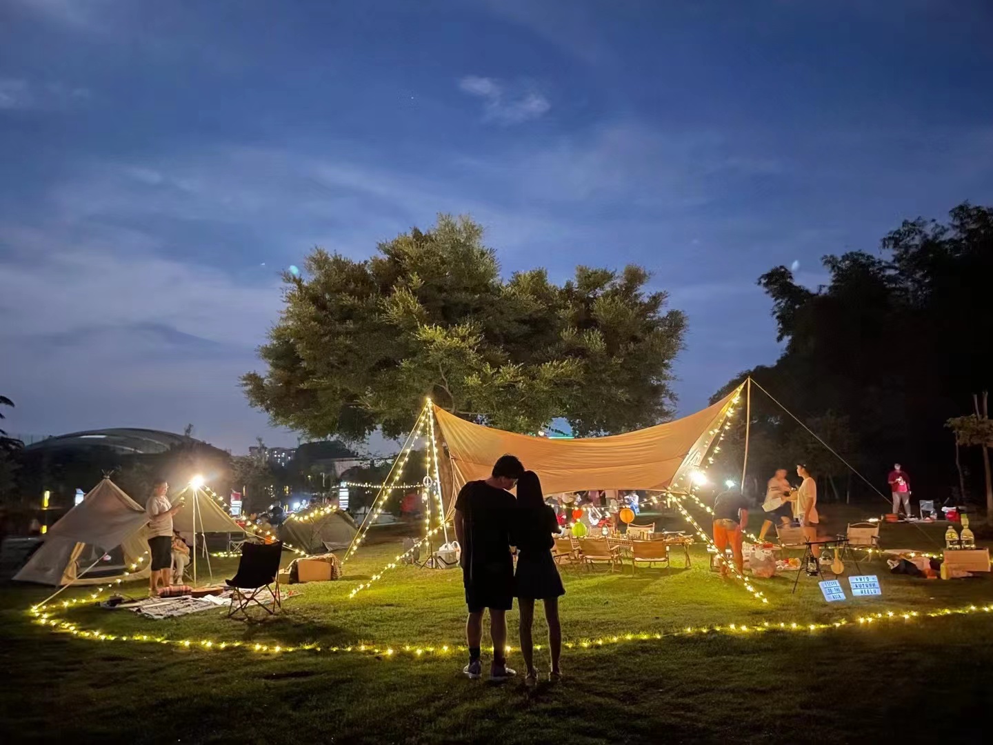 换句话说,以露营的名义去度个假,会更加符合精致露营所提倡的精神——比传统的露营体验更精致,并兼具了好玩、好看、好拍以及舒适的体验。曾经参加过公司组织的精致露营团建活动的阿Ken告诉记者,现在企业做活动基本上都会考虑在周边,登山、徒步、泡温泉、乡村游等都体验过了,前不久部门组织的一场小型精致露营团建活动让他感到惊喜。部门将活动交给了专门组织露营的公司,一行人自驾前往从化,中午品尝当地农家菜后来到指定的地点,就已经看到帐篷以及餐台食物等已经准备好了,还有人组织玩各种团建游戏。傍晚,大家一边享用美食一边欣赏着即兴音乐表演,同事们兴致都很高,对这样轻松的露营体验赞不绝口。