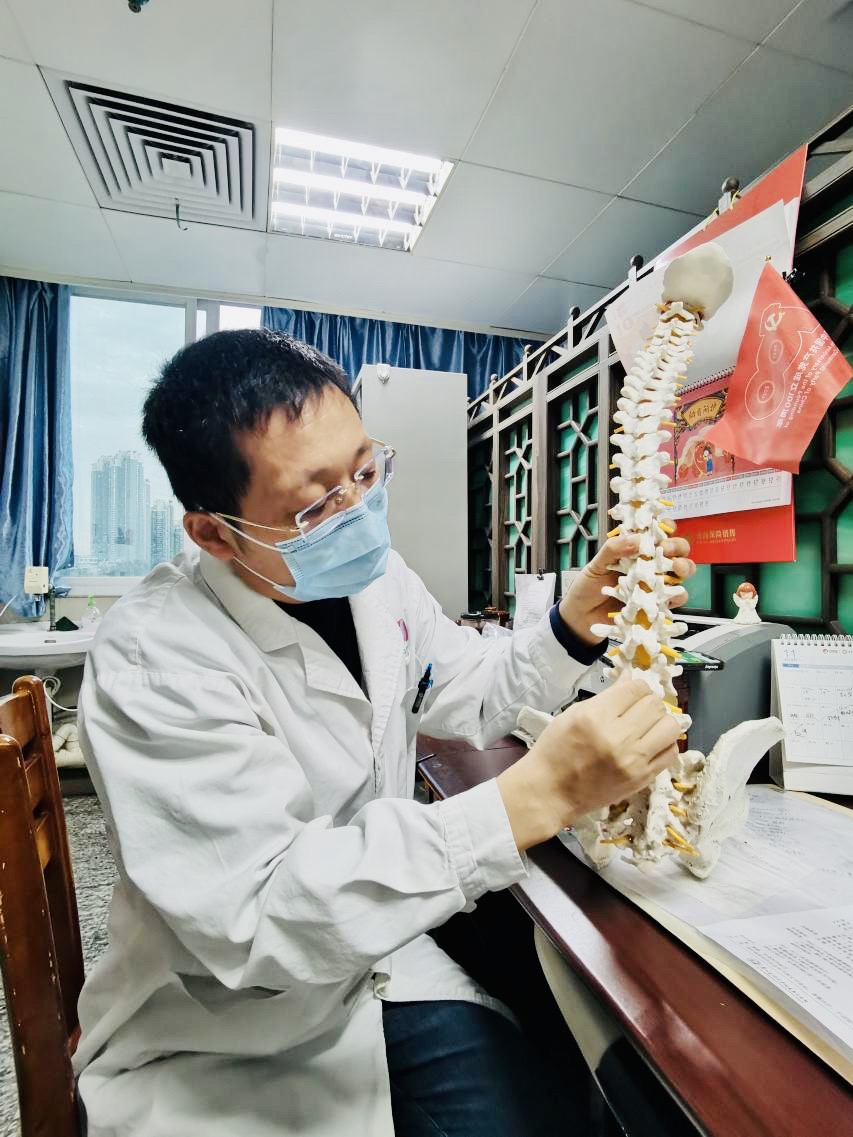 广医三院中医科主任中医师胥海斌为他做了详细检查,发现他腰椎4、5椎间盘轻度膨出,腰4椎体向后移位,椎体还出现一定程度的扭转,同时伴有脊柱侧弯。