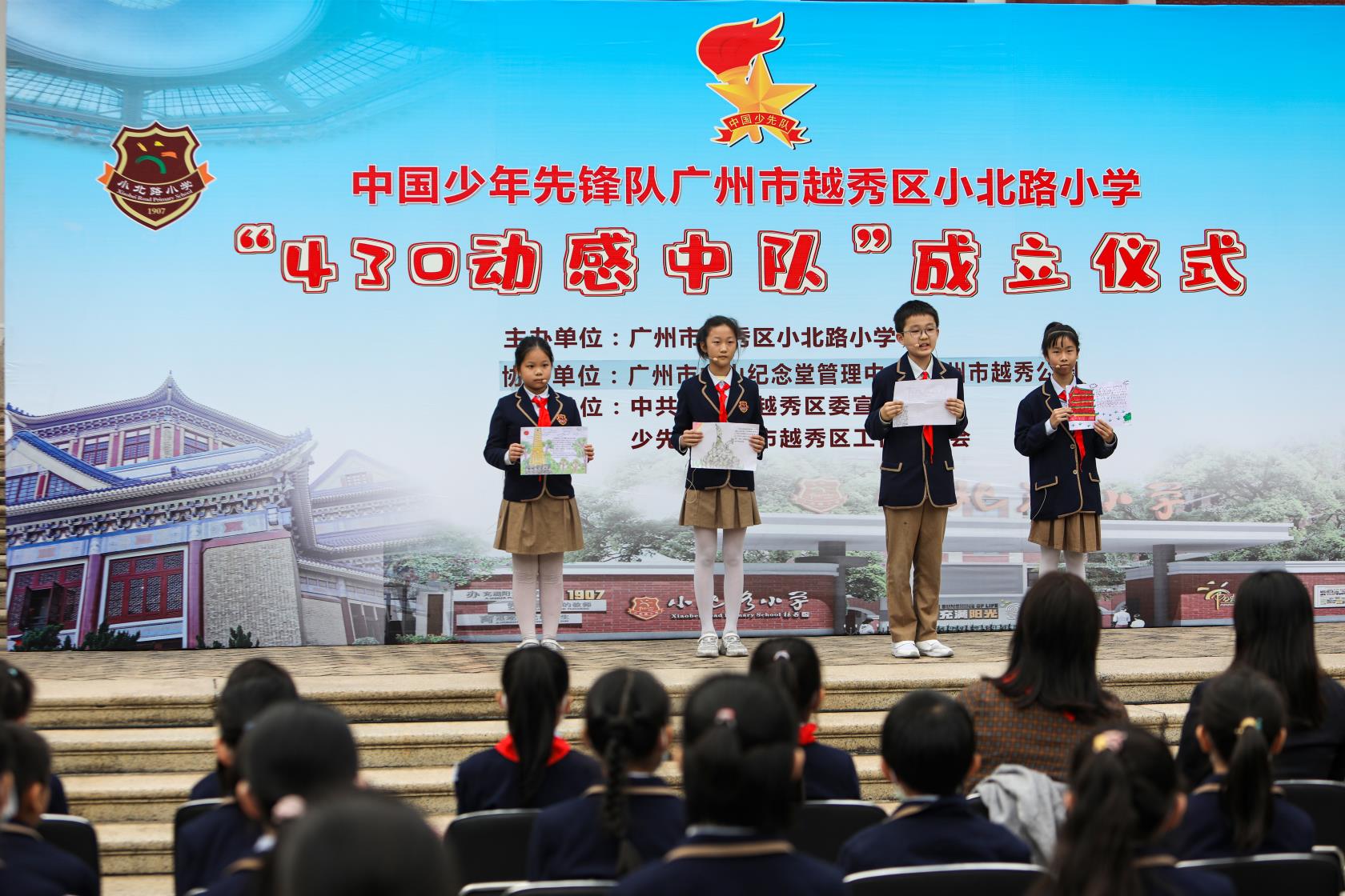 成立仪式在雄壮的鼓号声中拉开了帷幕。小北路小学和中山纪念堂、越秀公园携手共建少先队小北路小学“430动感中队”,旨在通过以“红色小讲解员”“越秀山小代言人”“中草药文化小传承者”的身份传承红色基因,延续历史文脉、坚定文化自信、推动文明交流互鉴。