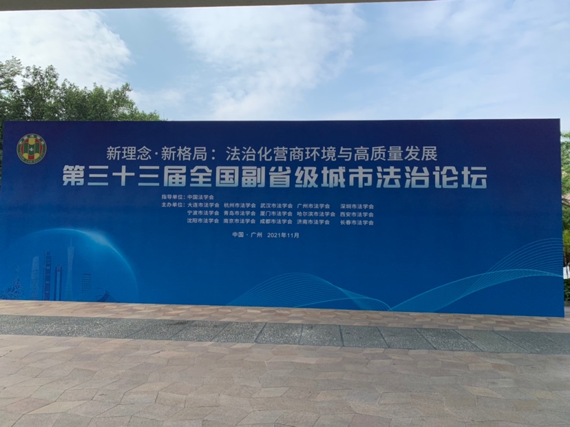 11月17日,第三十三届全国副省级城市法治论坛在广州召开,论坛以“新理念·新格局:法治化营商环境与高质量发展”为主题。来自全国15个副省级城市的法学法律界专家学者、实务工作者、社会工作者通过“线上+线下”融合模式参加论坛。